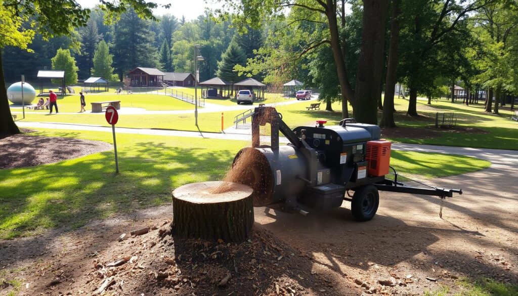 Stump grinding is quick and easy. It’s better than old methods that take a lot of time and effort. This makes park upkeep cheaper and more efficient.